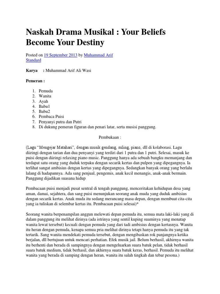 51 downloads 1223 views 71kb size. Bisa diambil oleh audiensnya, itu diperlukan di berbagai genre drama, baik komedi maupun musikal. Phantom of the opera · 4. Naskah drama secangkir teh dipilih karena belum pernah dipentaskan. Drama musikal lestari hutanku indah negerikulestari hutanku indah negeriku.